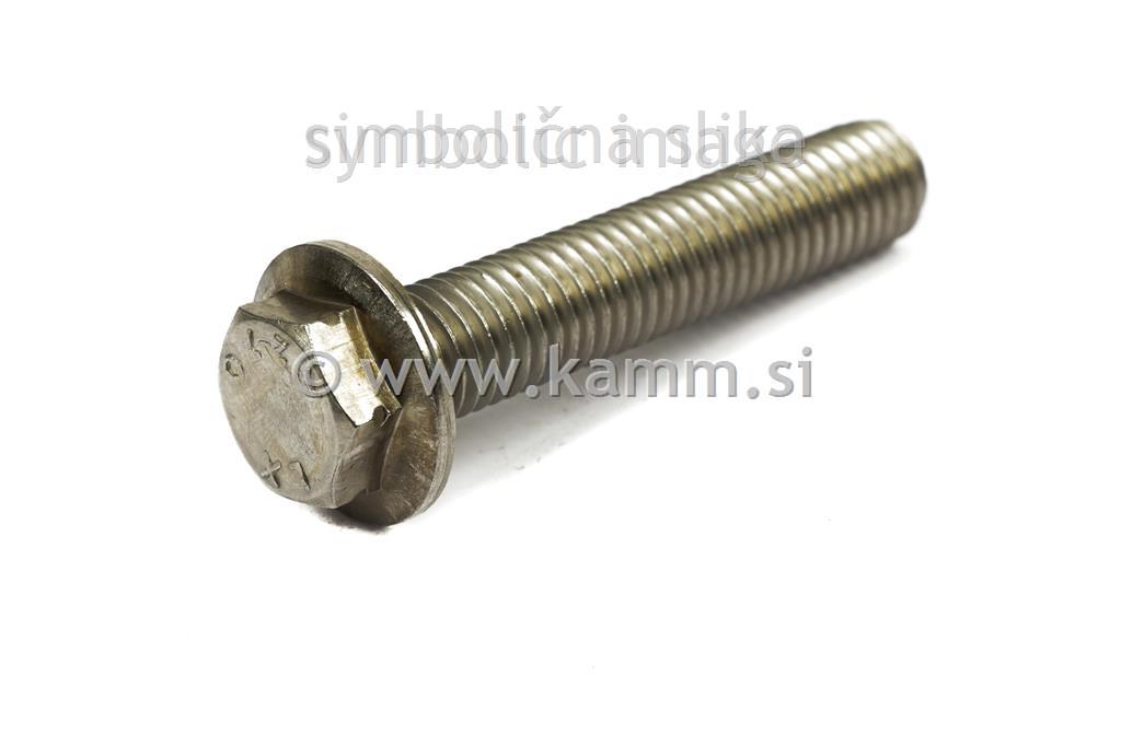 Nerjaveči šestrobi vijak s prirobnico premera M8 (8 mm), dolžine 60 mm, kvalitete A2, DIN standard .