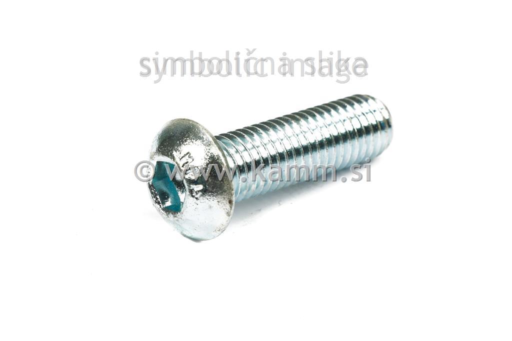 Cinkani imbus vijak z bombirano glavo premera M6 (6 mm), dolžine 20 mm, kvalitete , DIN standard .