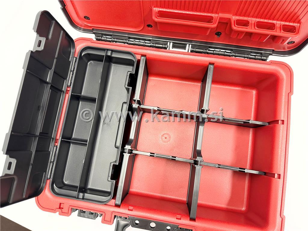 Njegova notranjost omogoča učinkovito in pregledno shranjevanje orodja različnih velikosti, medtem ko vgrajeni organizator omogoča hiter in enostaven dostop do najpogosteje uporabljenega orodja.